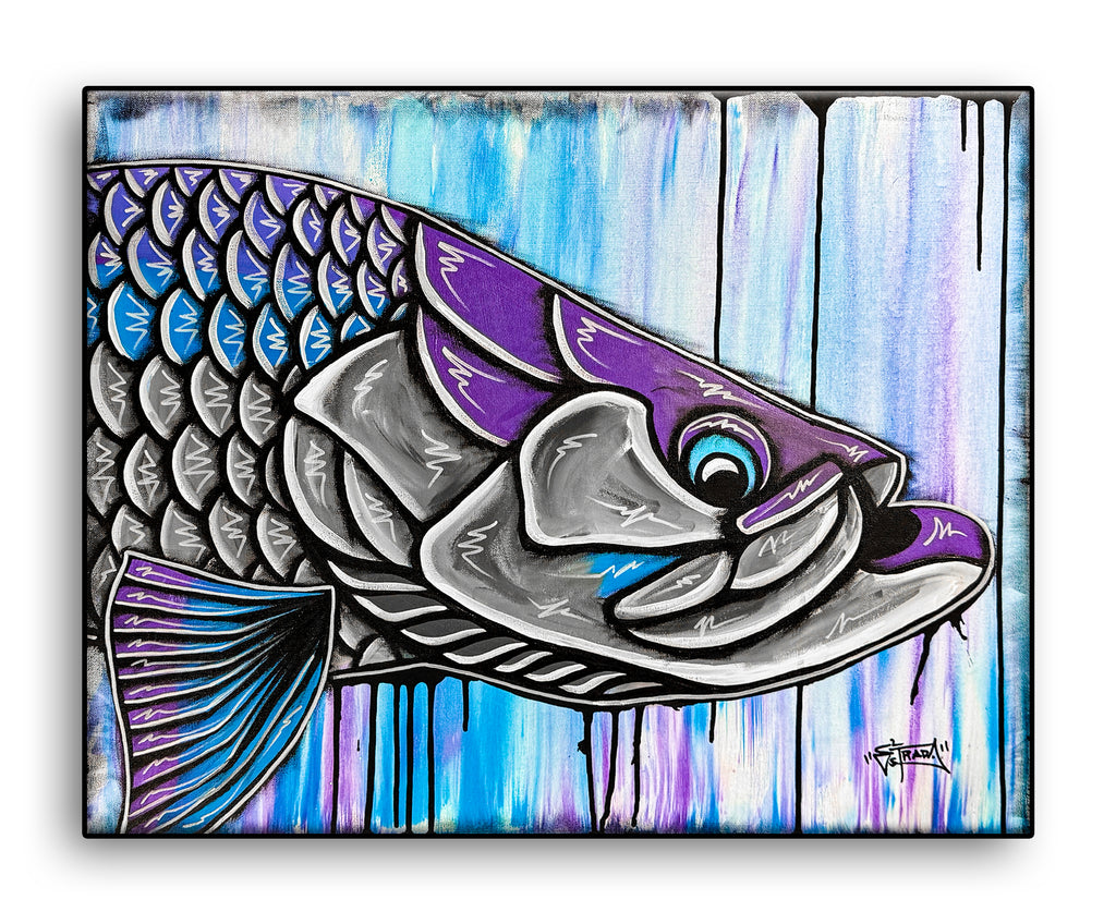 Expertly crafted with precision and care, the Tarpon Drip - Original Painting showcases a stunning hand painted tarpon on a 24x30" gallery wrapped canvas. Bring the beauty of nature into your home or office with this unique and captivating piece of art.